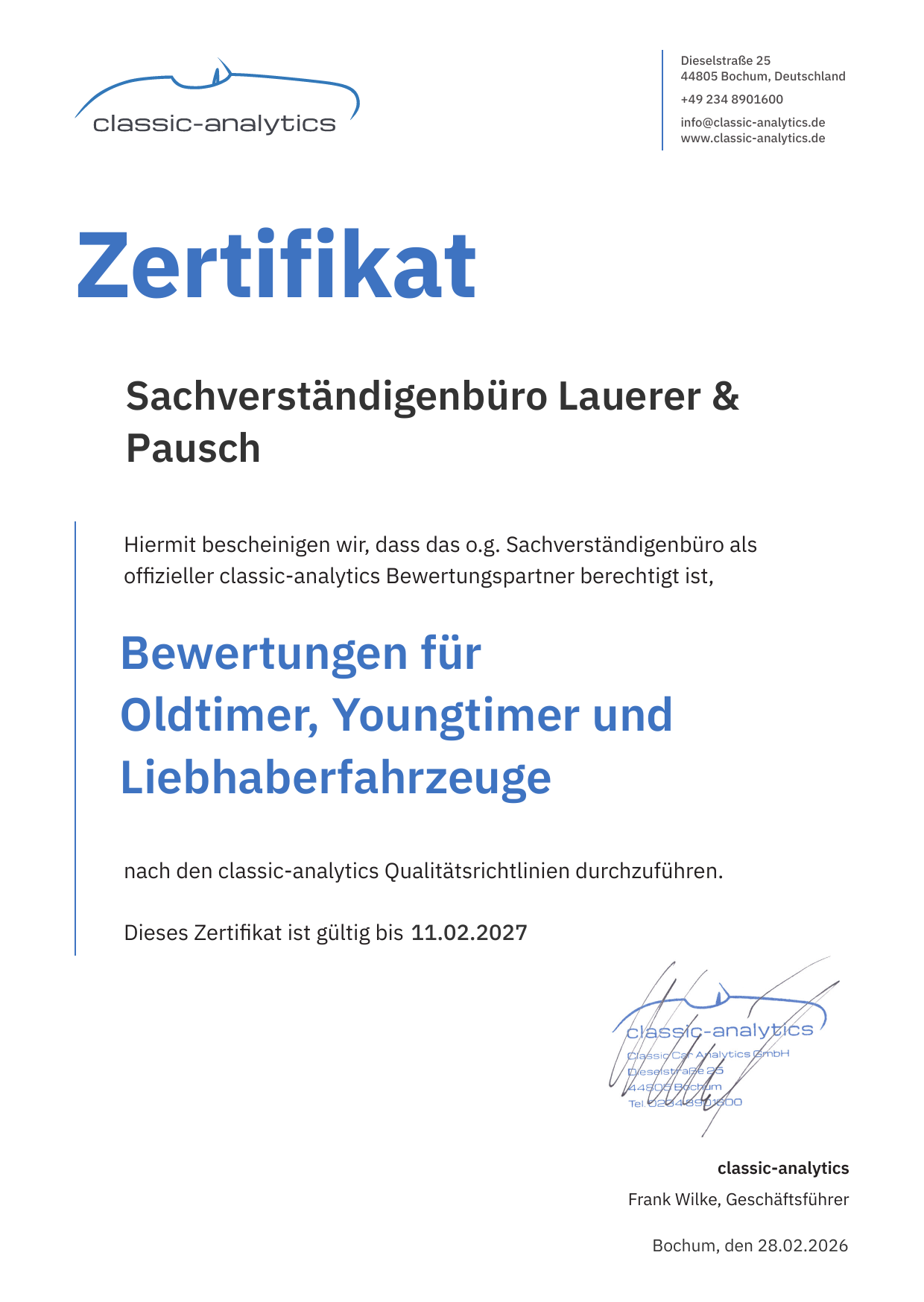 Wir erstellen Wertgutachten für Pkw, Motorräder, Nutzfahrzeuge sowie Oldtimer und Youngtimer. Unsere Bewertungen dienen der Versicherung, dem Verkauf, der Dokumentation oder zur allgemeinen Wertermittlung – objektiv, nachvollziehbar und unabhängig.